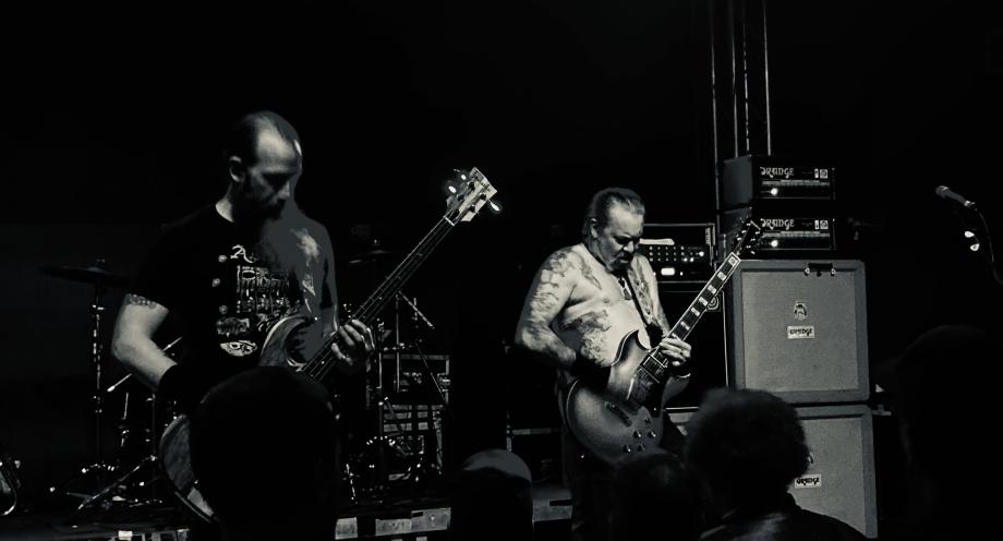 Nach einer kurzen Umbaupause ertönt über die Anlage “Karanlık Yol”, ein instrumentales Stück vom neuen Album der Band und das unverkennbare Signal, dass es jetzt losgeht. Unter den verheißungvollen Klängen der Bağlama betreten grob geschätzte 634 Jahre Rockstarleben die Bühne, mindestens die Hälfte davon in Form des abgehalfterten Körpers von Matt Pike. Der spielt seine Gigs wohl grundsätzlich immer ohne Shirt, worauf mich meine Vorfeldrecherche bereits vorbereitet hat. Davon kann man jetzt halten was man will, mir persönlich ist grundsätzlich relativ egal, wie sich Künstler:innen auf der Bühne kleiden und benehmen, solange im Großen und Ganzen Konsens darüber besteht, dass man hier ist um kollektiv eine gute Zeit zu haben und den anderen den Abend nicht durch aufgedrängten Hautkontakt oder sonstige Rücksichtslosigkeiten versaut. Bis auf ein paar sichtlich betrunkene Typen, deren Körpergefühl über den Verlauf des Konzerts rapide abnimmt, scheinen aber alle hier Anwesenden das ähnlich zu sehen.
