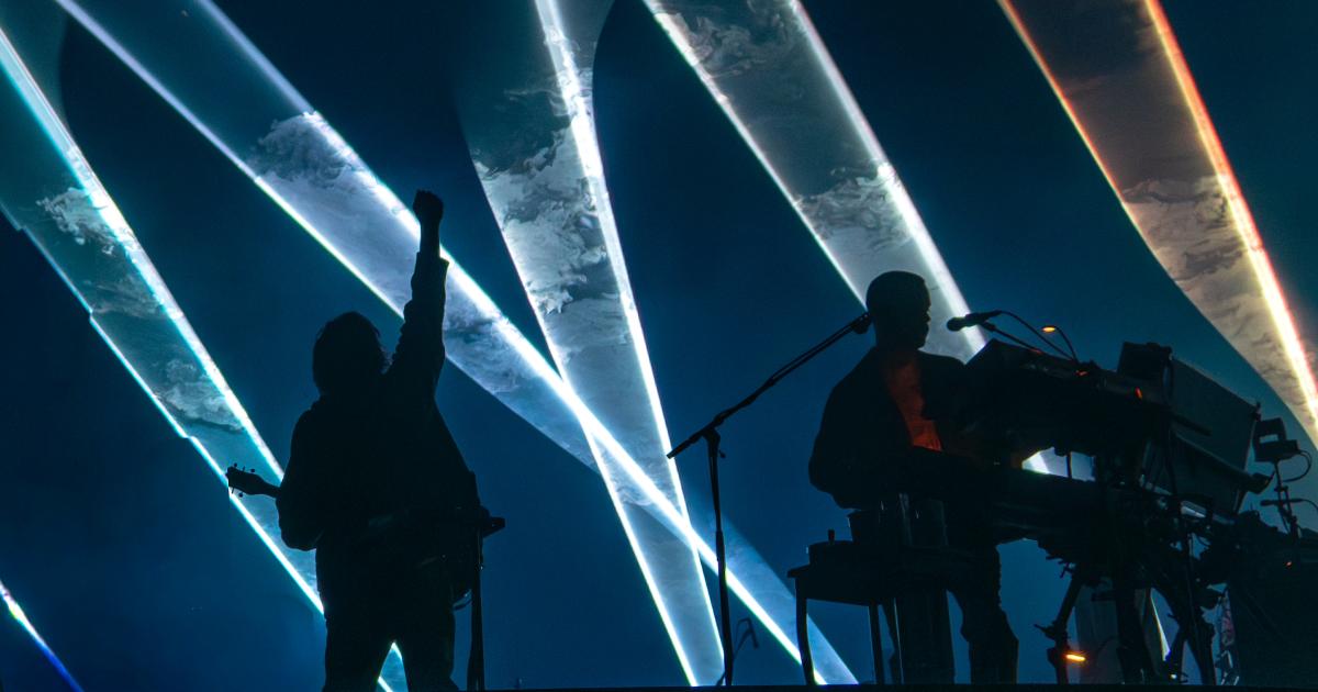 Parker und die Band lassen musikalisch nur wenig Luft an diesem Abend. Jeder Song wird von einem oft minutenlangen Interlude begleitet; wie auch das Licht, das die Olympiahalle unentwegt in Regenbogenfarben taucht.